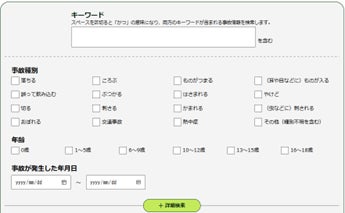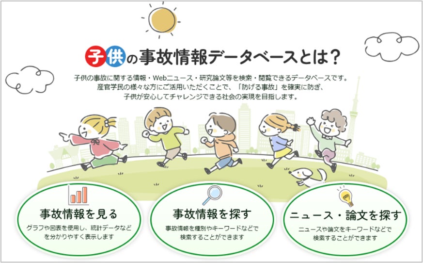 子供の事故情報データベースは、学校・保育施設での事故や製品事故など、様々な子供の事故情報を一元的に集約したオープンデータベースです。本データベースでは、子供の事故情報に加え、Webニュースや学術論文等の検索・閲覧が可能です。