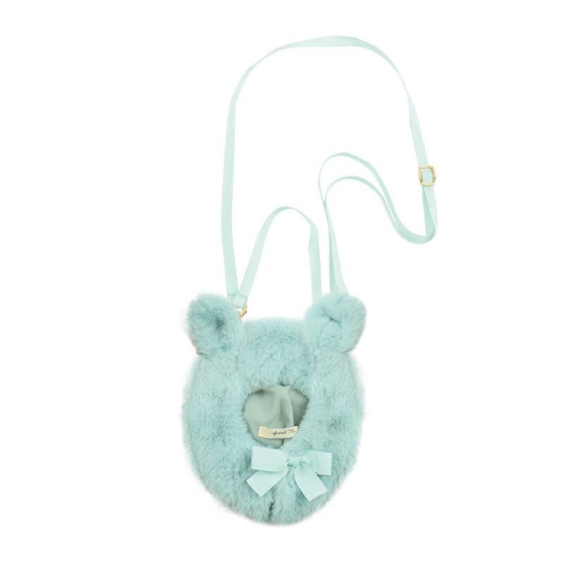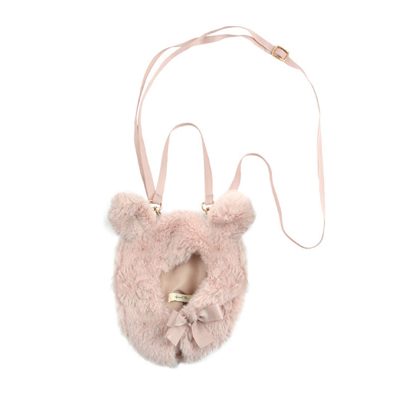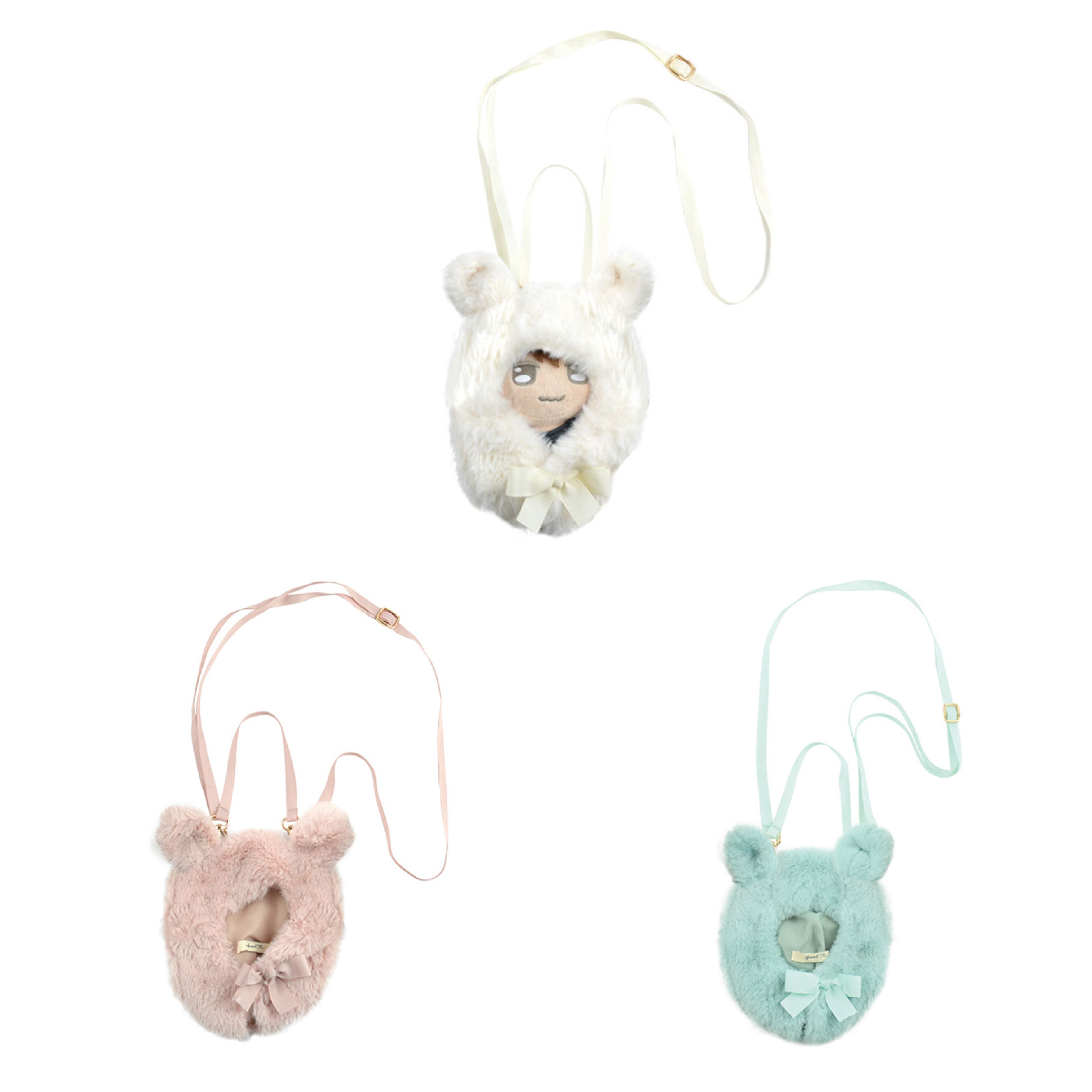 短いショルダー紐を使えばバッグチャームに、長いショルダー紐を使えばショルダーバッグ風に、ショルダーを外せばおくるみに!
