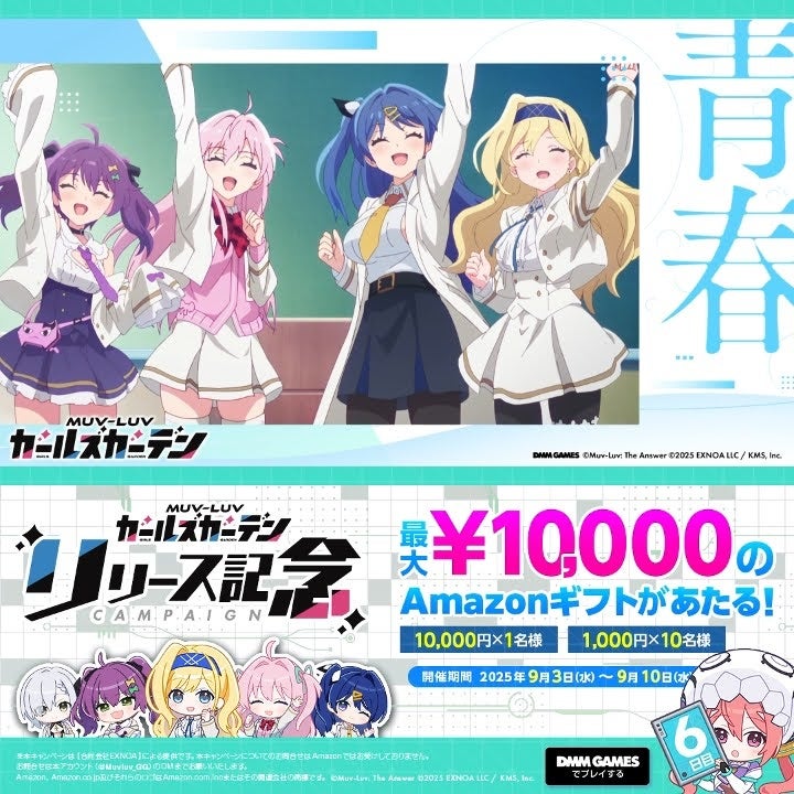 公式X(@Muvluv_GG)では正式リリースを記念して、抽選で最大10,000円分のAmazonギフトカード番号がその場で当たるインスタントウィンキャンペーンを開催中です。キャンペーンポストは公式Xより毎日投稿しておりますので是非公式Xをフォローしてキャンペーンにご参加ください!
