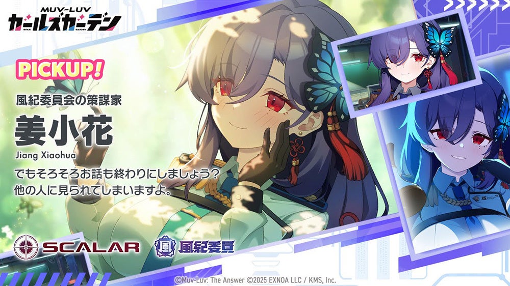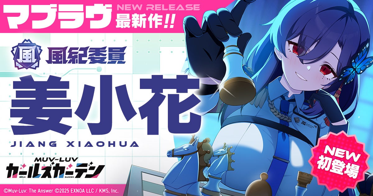 合同会社EXNOA(本社:東京都港区、CEO:村中 悠介、URL:https://games.dmm.com/)と株式会社KMS(本社:東京都千代田区、代表:梶原 健太郎、URL:http://kms3.com/ )が贈るマブラヴ最新作『マブラヴ ガールズガーデン』(以下、マブガル)において、9月9日より新SSR「姜小花」【風紀委員会の策謀家】が登場したことをお知らせいたします。これに合わせて、「姜小花」Pickupガチャ及び「姜小花」記念ログインボーナスを開催いたしました。