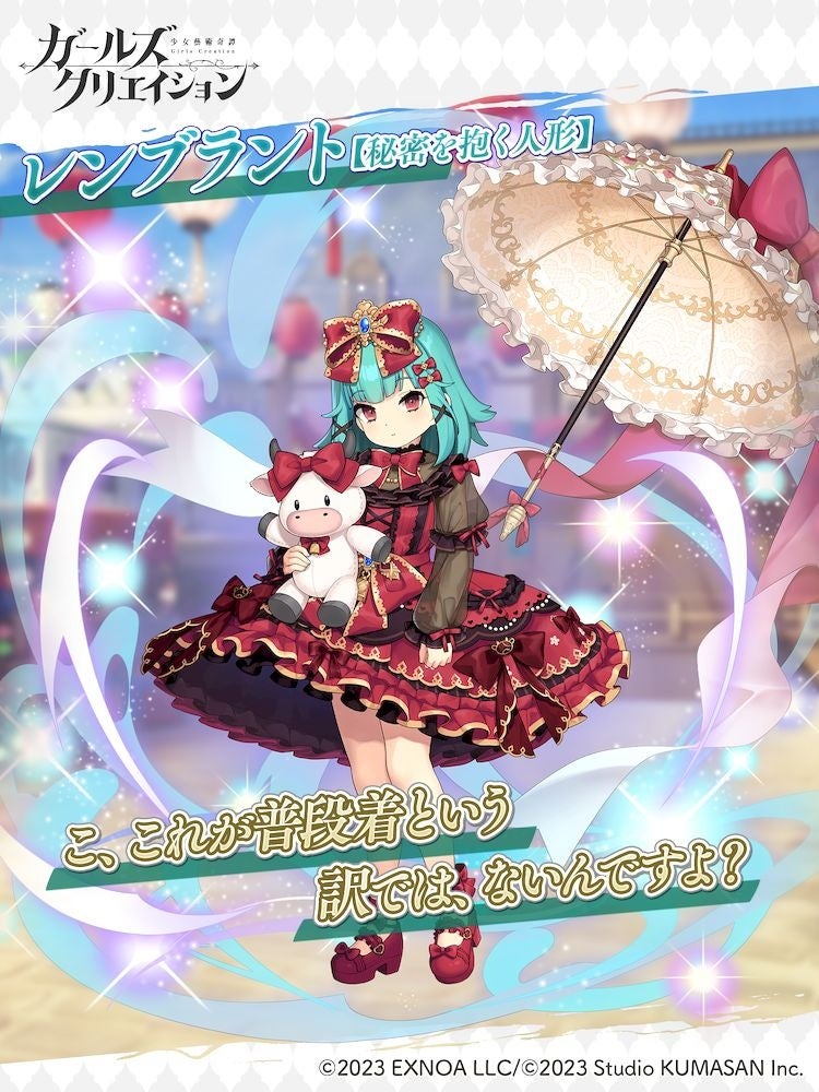 合同会社EXNOA(本社:東京都港区、CEO:村中 悠介、URL:https://games.dmm.com/)が運営するDMM GAMESにおいて、「クリエイティブチーム くまさん」第4弾作品となる『ガールズクリエイション -少女藝術綺譚-』(以下、『ガールズクリエイション』)にて、新たなゲーム内イベントおよびピックアップガチャの開催をお知らせいたします。