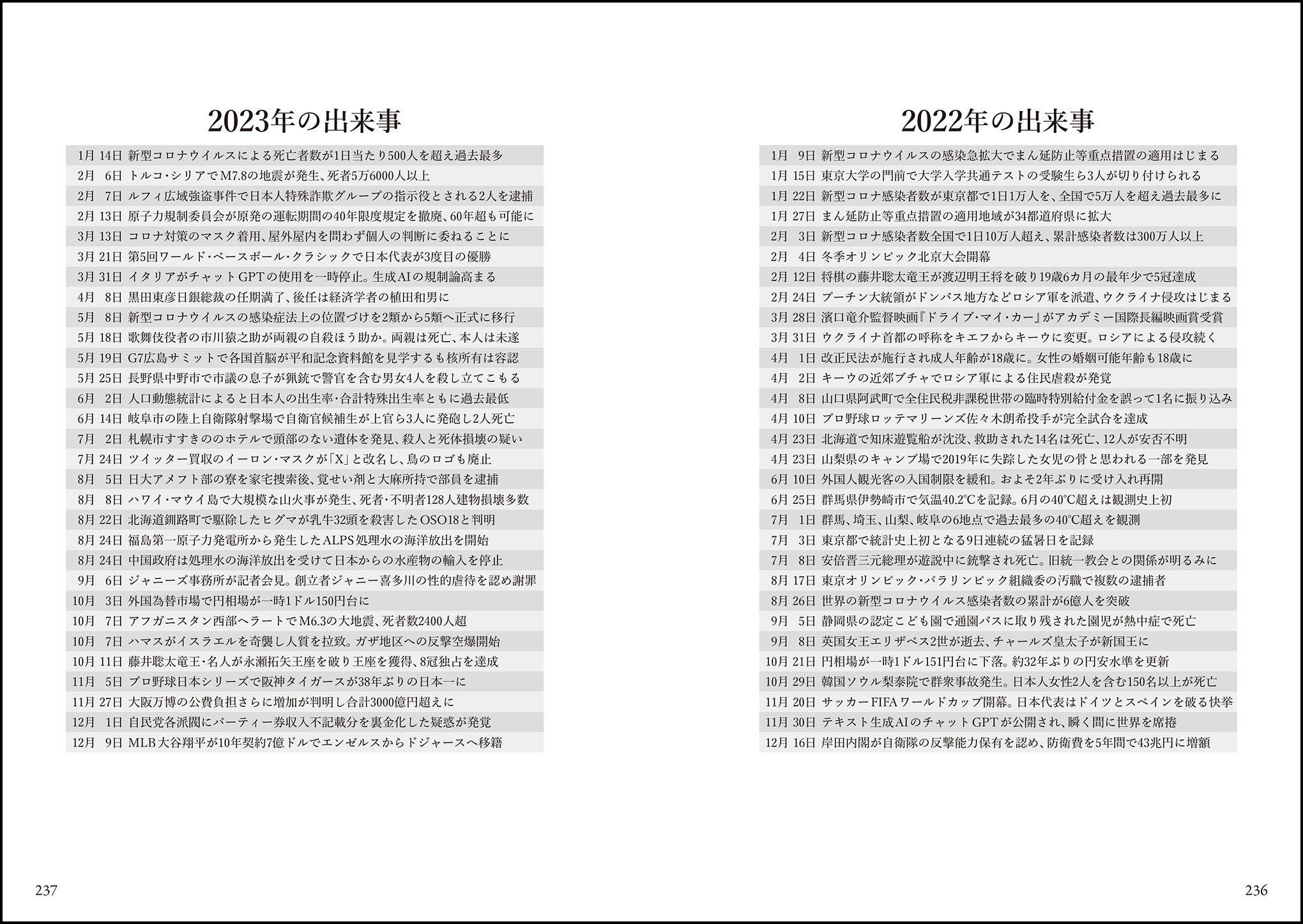 2年間で起こった世の中の出来事を、著者・玉村氏のセレクトで巻末に掲載しています。