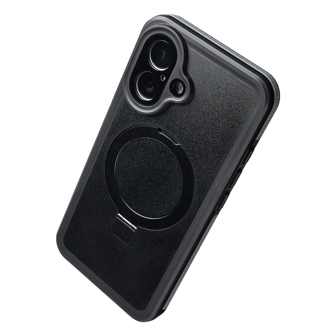 MagSafeに対応し、ワイヤレス充電やマグネットアクセサリをケース装着のまま活用可能。さらにリング部分は簡易スタンドとしても、スマホリングとしても使えるため、動画視聴やビデオ通話がより快適になります。タフさだけで終わらない、“便利さまで備えた保護ケース”です。
