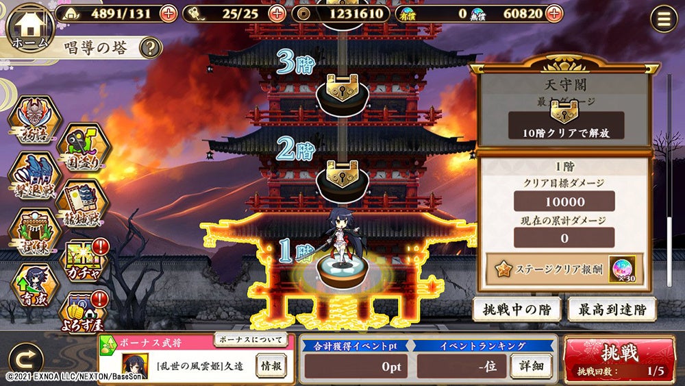 ステージ毎に目標ダメージを与えると、次のステージに進めるタワー型コンテンツが登場。