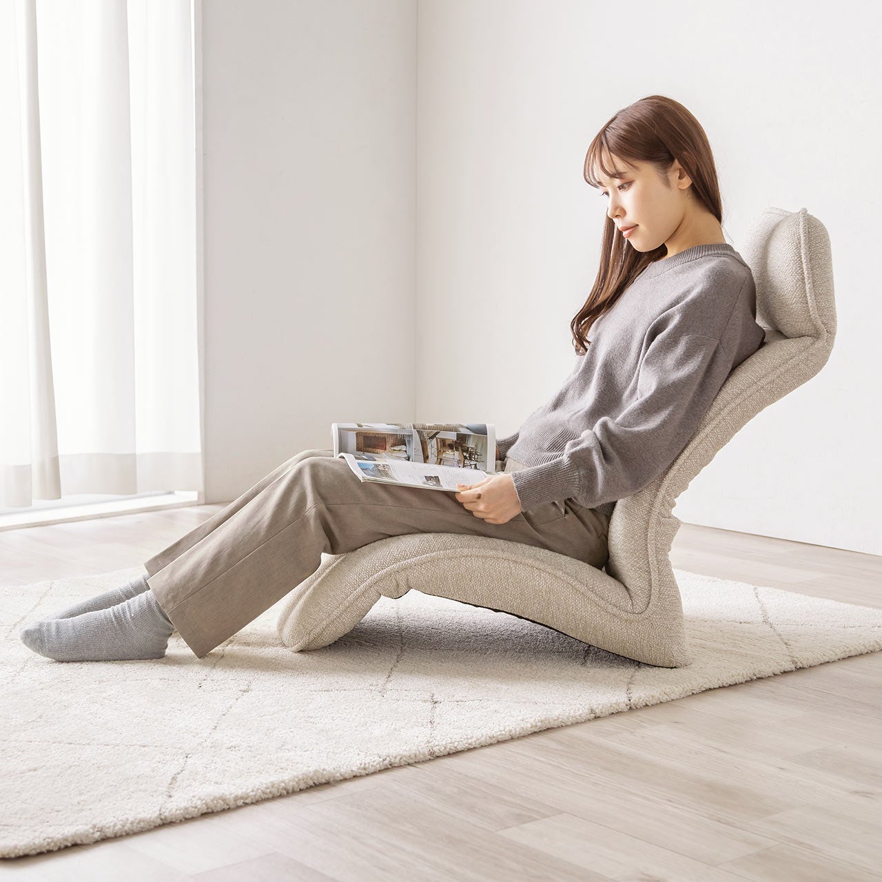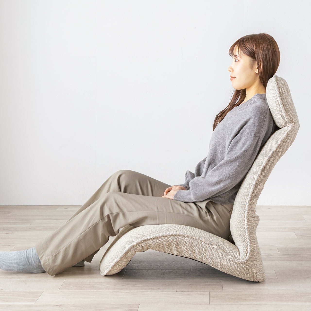 背もたれには14段階の細かなギアを搭載している。テレビ視聴や読書、スマホ操作、さらにはフラットにしてのお昼寝など、その時々の姿勢に合わせて最適な角度に調整が可能である。自分の好みにフィットするポジションを確実に見つけられるため、集中したい作業時間から完全な休息まで、幅広いシーンで活躍する一台である。