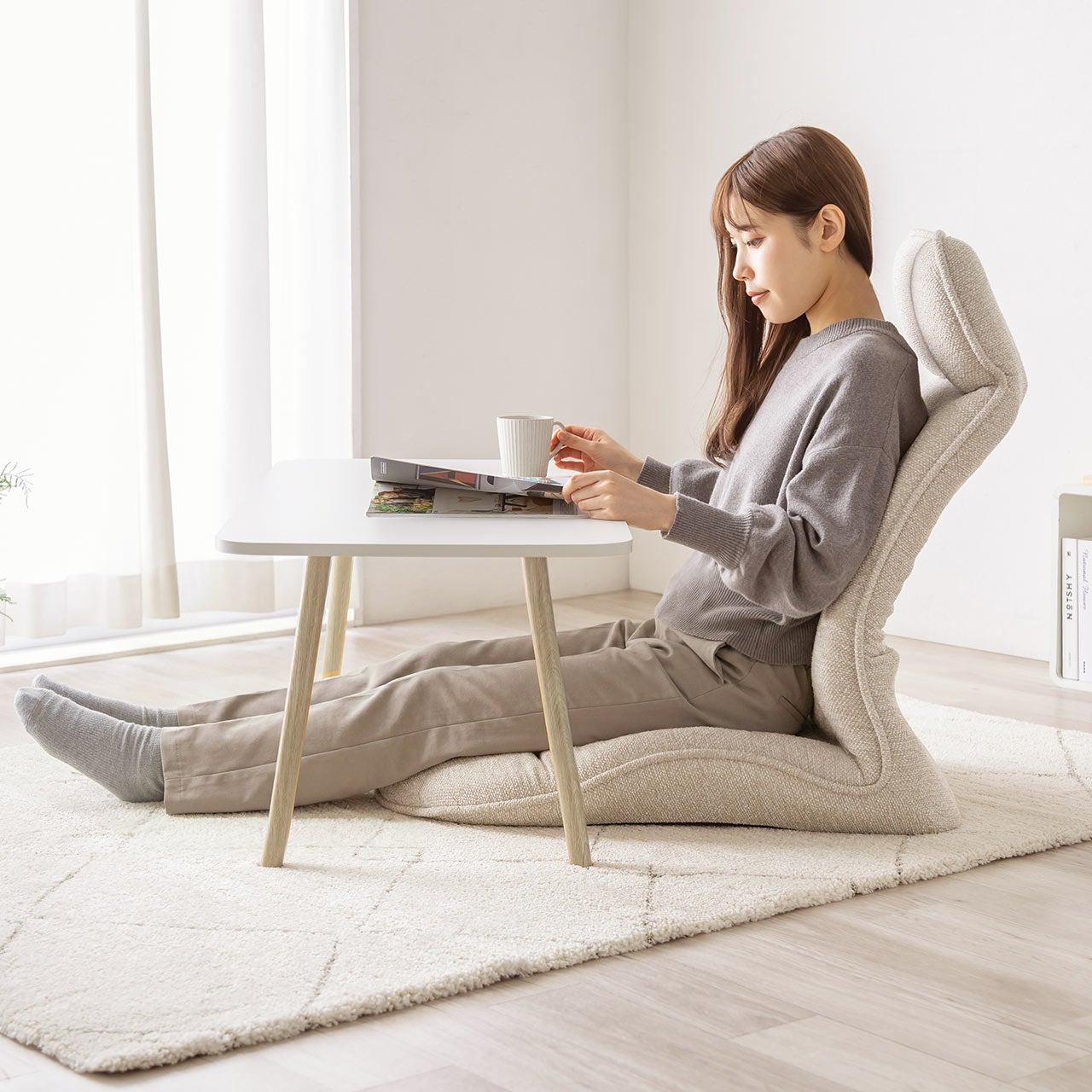 座面には、ベッドや高級ソファにも使われる独立したポケットコイルを内蔵している。一つひとつのコイルが点で体を支えるため、体圧が分散され、長時間座っていても疲れにくいのが最大の特徴だ。ウレタンのみの座椅子に比べて耐久性が高く、底付き感のないふかふかのクッション性が、日々のリラックスタイムを格上げする。