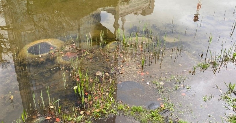 ② 久保寛子氏《ハイヌウェレの彫像》(会場:草地広場)と《やさしい手》(会場:心字池)
