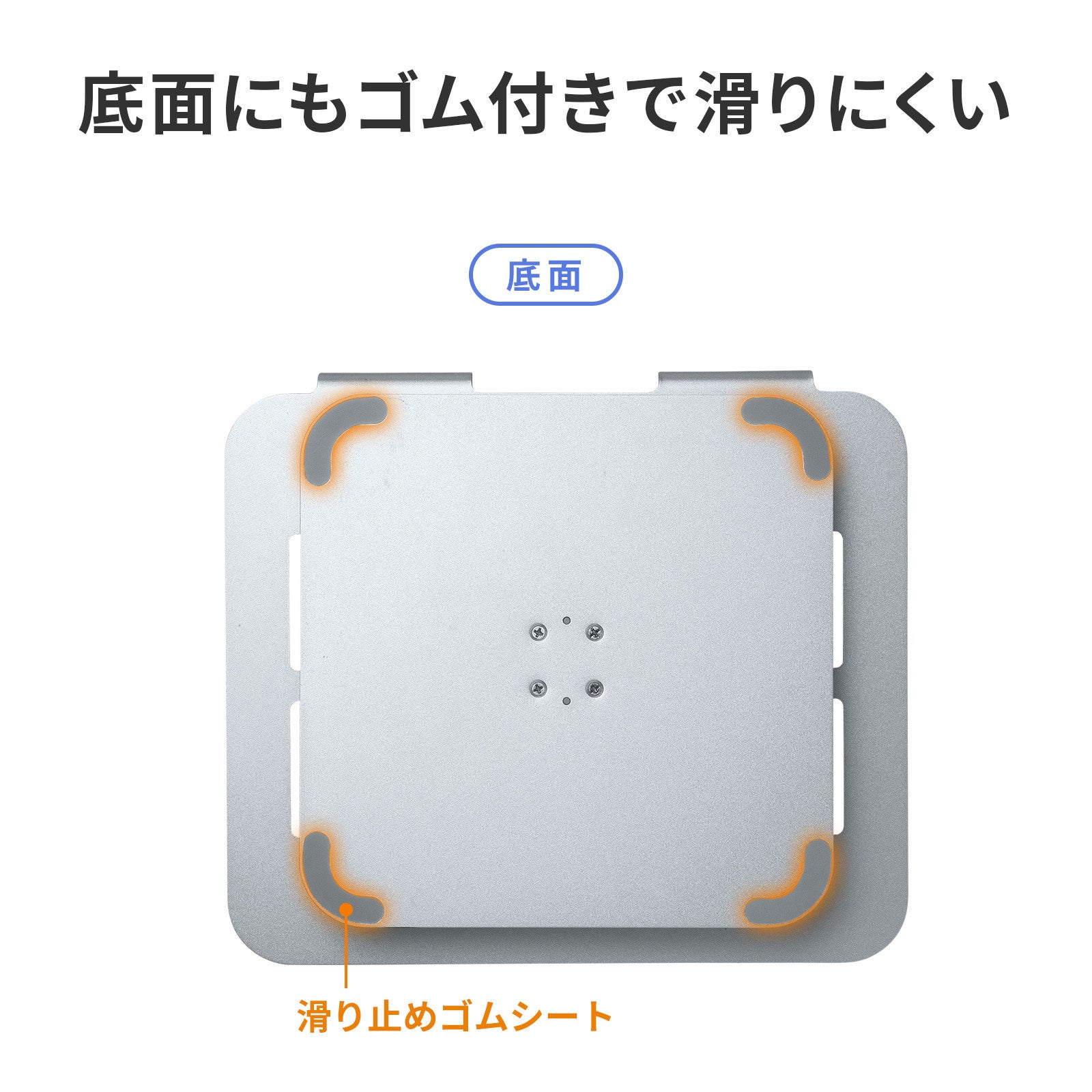 ノートパソコンと接する部分はシリコーンゴムシートにより、ノートパソコンに傷が付くのを防ぎます。
