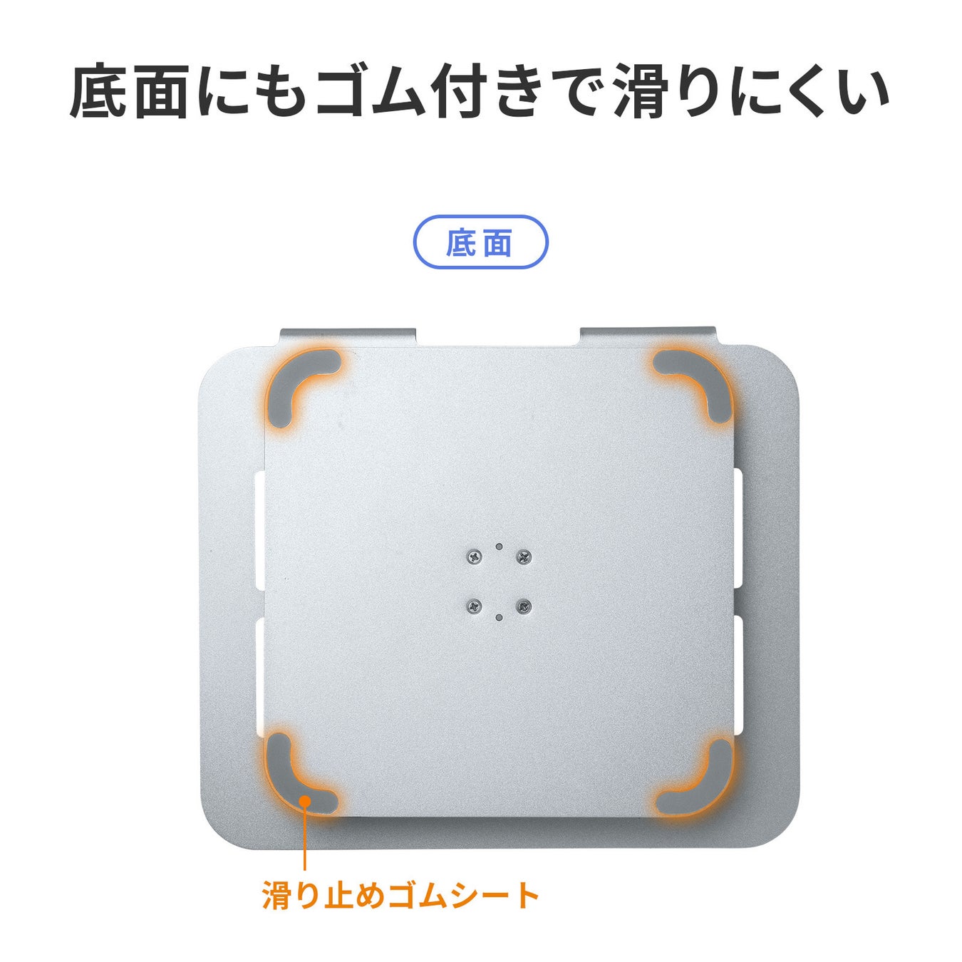 底面に4つの滑り止めゴムシートがついているので、パソコン操作中もズレにくく快適に使用できます。