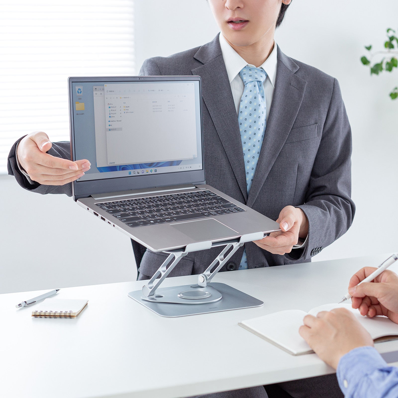 品名:ノートパソコン用スタンド(回転機能付き、角度・高さ調整タイプ)