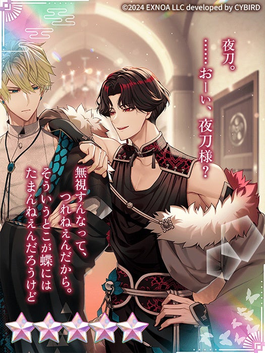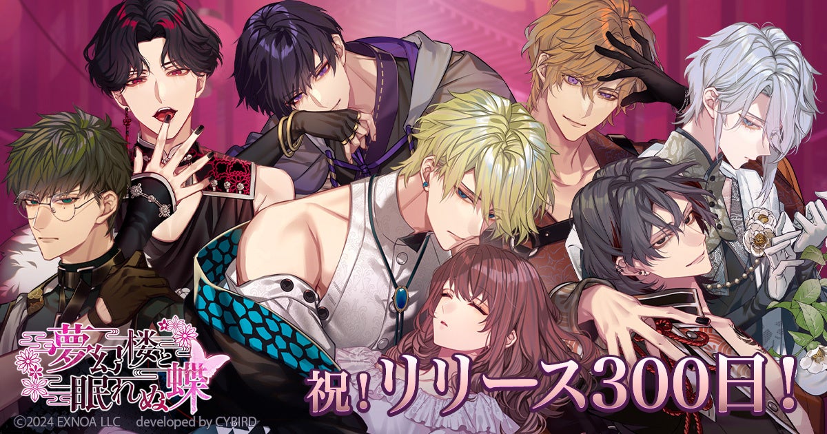 DMM GAMESを運営する合同会社EXNOA(本社:東京都港区、CEO:村中 悠介、URL:https://games.dmm.com/)は、リリース300日を迎えるRomanteen18シリーズの第1弾・オトナの女性向け恋愛ゲーム「夢幻楼と眠れぬ蝶」にて、新たなゲーム内イベント「愛されドールにキスをして」を開催することをお知らせいたします。また、「夢幻楼ペアカードガチャ 〜夜刀&葛葉〜」や「リリース300日記念セット販売」も開催することをお知らせいたします。