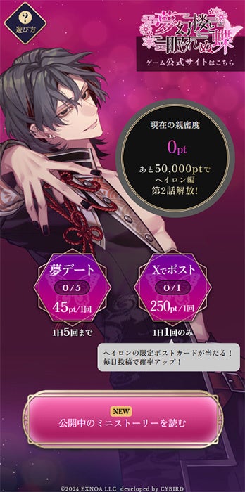 ストーリーはユーザー全体の「親密度」に応じて解放され、「親密度」はWebでの夢デートやXへのポストなどの行動で上げることができます。