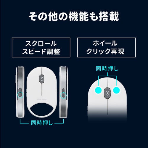 クリック音を抑えた静音ボタンを採用し、カフェや移動中の新幹線、会議中でも周囲を気にせず使用可能。また、左利きの方でも快適に使える左手モードを搭載しており、ボタン配置を反転できます。使う人や場所を選ばない、配慮の行き届いた設計です。