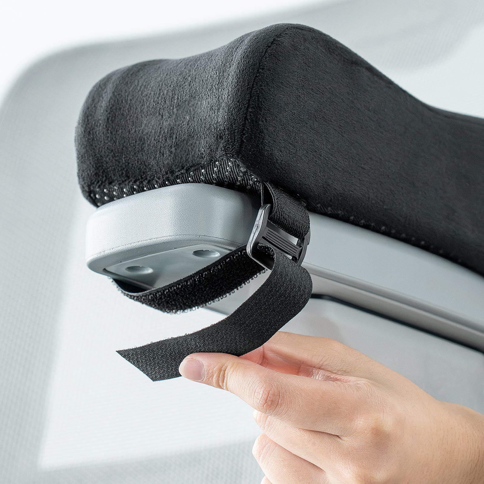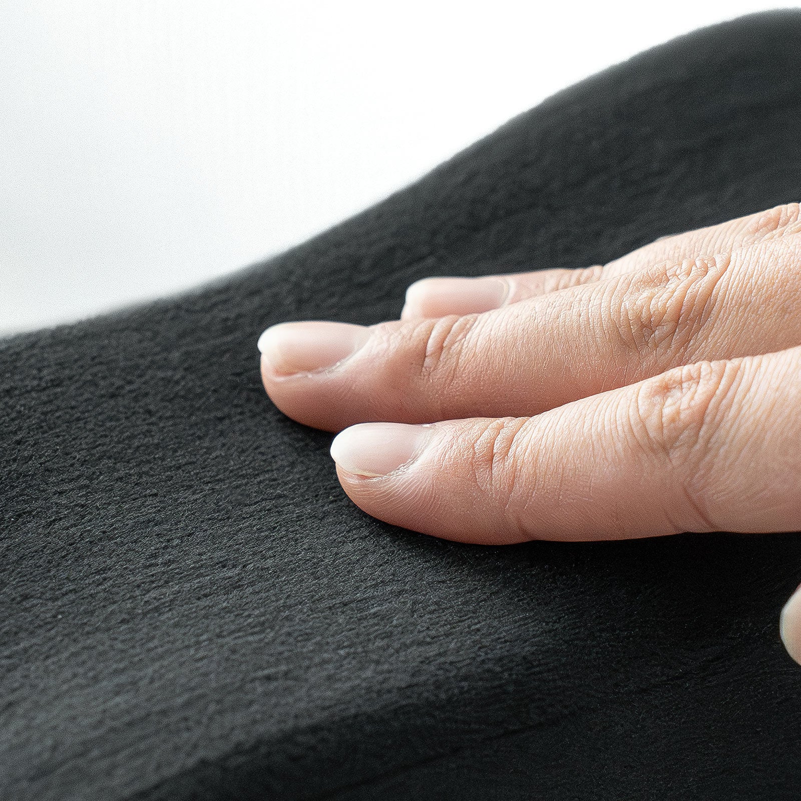 表面には、なめらかで心地よいベルベット生地を使用。直接肌に触れても違和感がなく、長時間の使用でもストレスを感じにくいのが特長です。シンプルなブラックカラーで、どんなインテリアや椅子にも自然に馴染み、オフィスでも自宅でも違和感なく使えます。