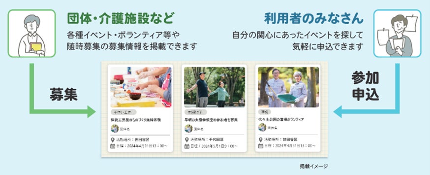 団体登録を行うことにより、イベントやボランティア活動の募集情報を無料で掲載すること