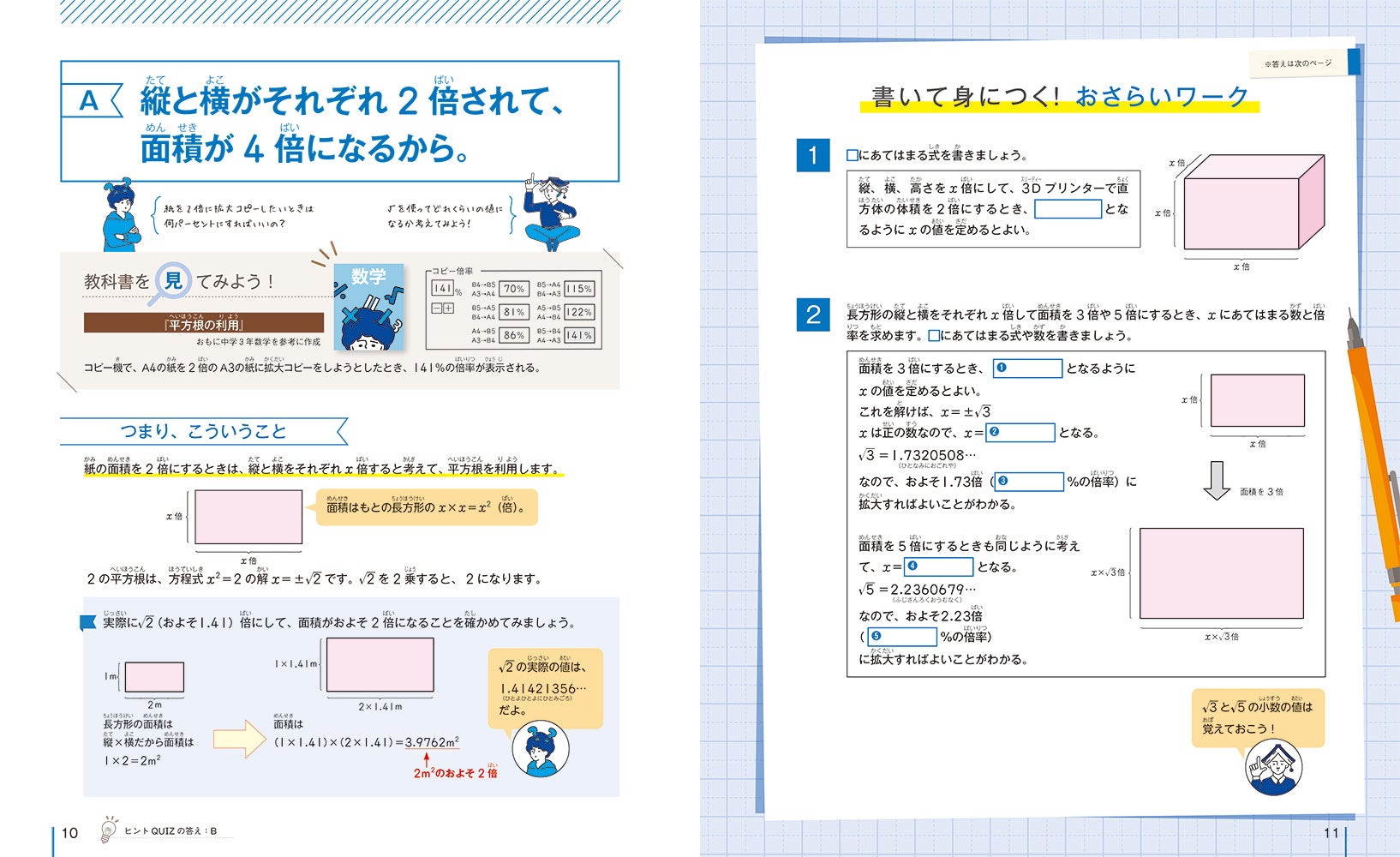 小・中学校で学ぶ内容の復習でありつつ、大人でも生活に役立つ知識を題材としているため、「中学生向けの問題集を買ってみたけど、放置してしまっている」方にもぜひ手に取っていただきたいシリーズです。