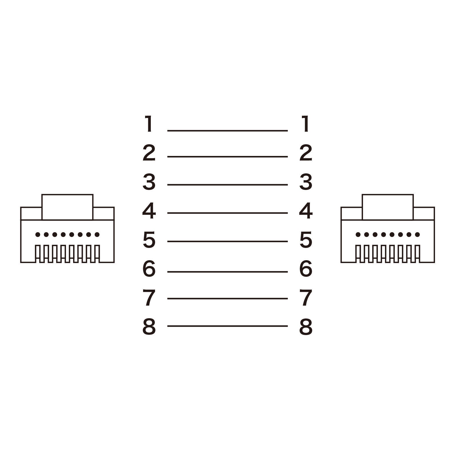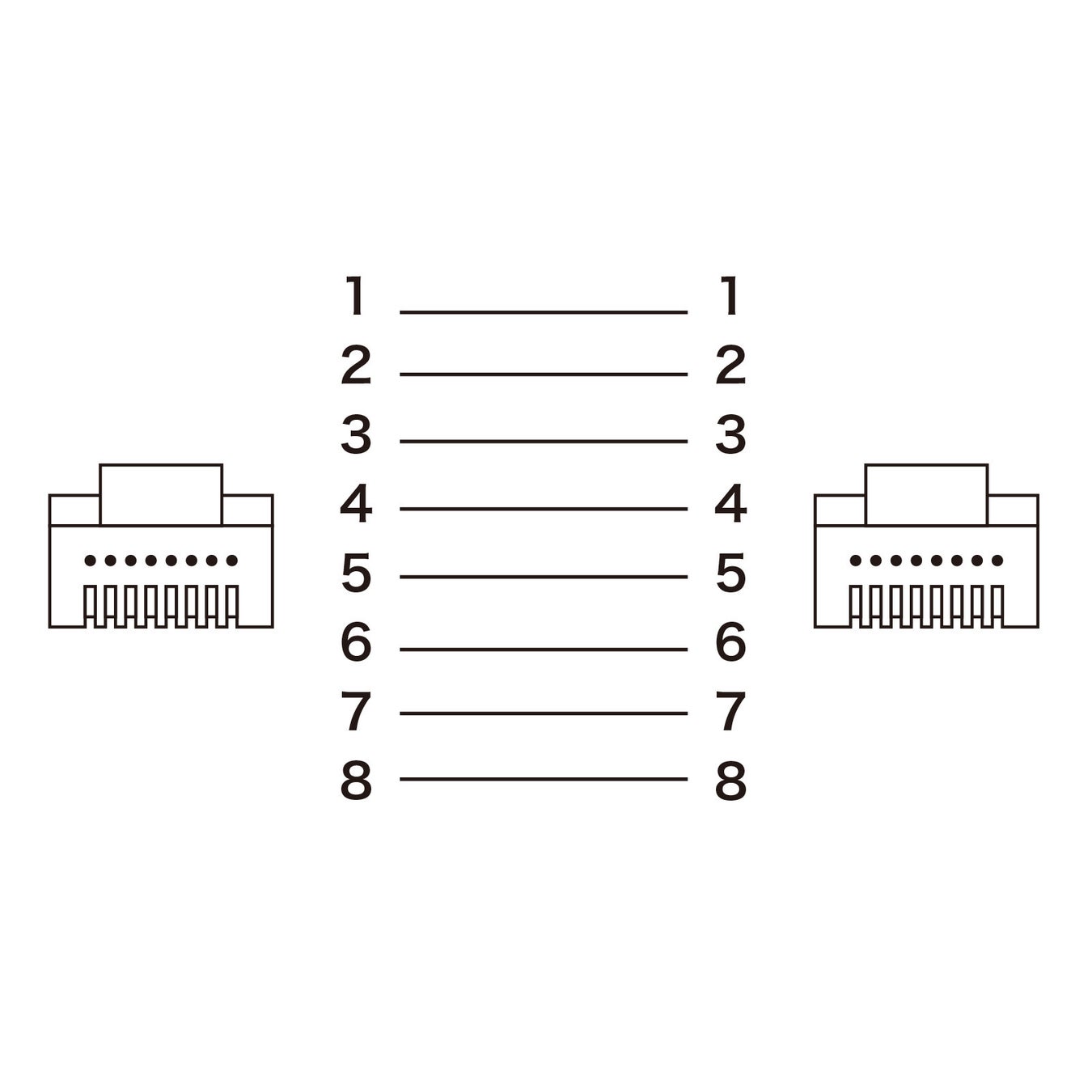 両端のコネクタのピン配置が同じであるため、ネットワーク機器の指定されたポートにそのまま接続するだけで使用できます。