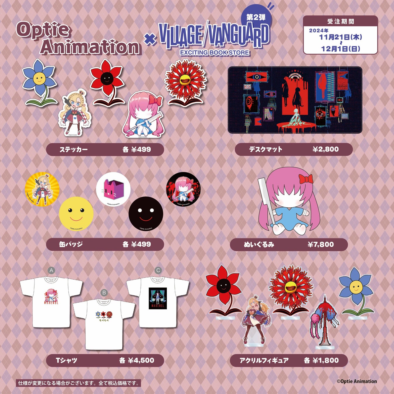 2024年11月21日(木)より、音楽ゲームを中心に活動する映像作家"Optie"を中心としたYouTubeチャンネル【Optie Animation】と、ヴィレヴァンのコラボグッズ第2弾が受注販売決定☆彡