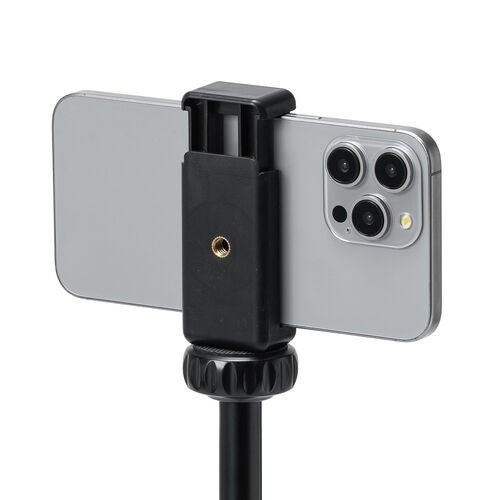 標準的な1/4インチネジに加え、幅58〜95mmのスマートフォンに対応する専用ホルダーを付属している。デジタルカメラやビデオカメラだけでなく、普段お使いのiPhoneやスマートフォンをそのまま装着して安定した撮影が楽しめる。これ一台で、SNS用の動画撮影から本格的な記念写真まで、デバイスを問わず幅広く活躍する。