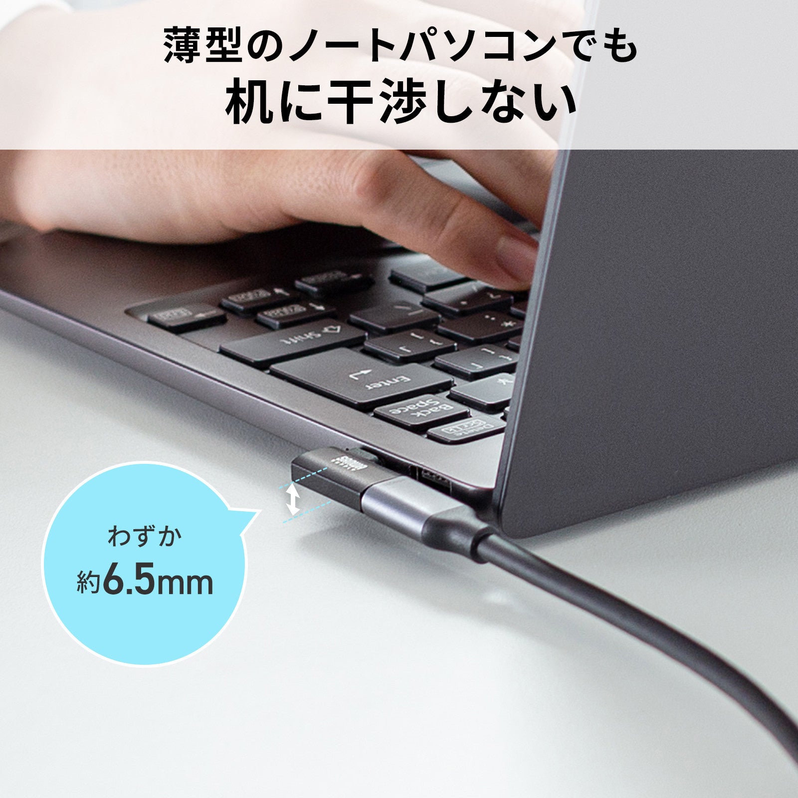 薄型のノートパソコンでも机に干渉しない「AD-USB35CCFLY」