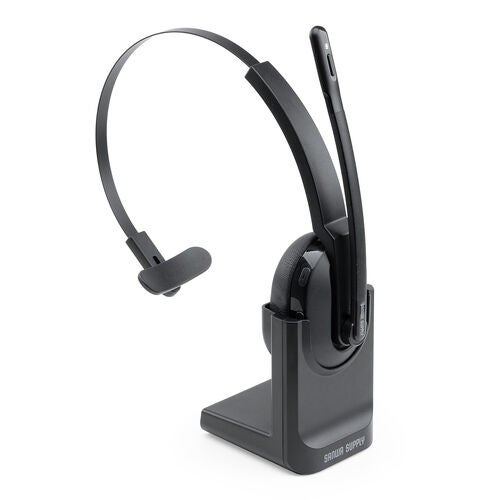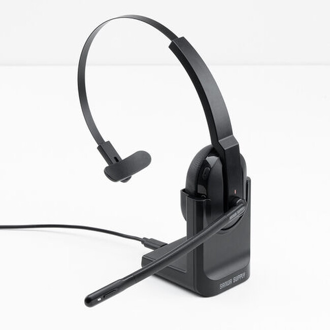 ワイヤレスヘッドセット 業務用 充電スタンド付き 片耳 遅延の少ない2.4GHz 最大通話約25時間 ノイズキャンセリングマイク付き ミュートボタン USB接続
