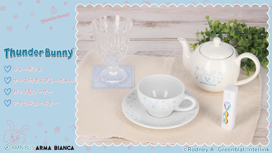 『パラッパラッパー』でお馴染みのロドニーによるふわふわ雲のうさぎキャラクター『サンダーバニー』のカップ&ソーサーなどの受注を開始!!アニメ・漫画のオリジナルグッズを販売する「AMNIBUS」にて