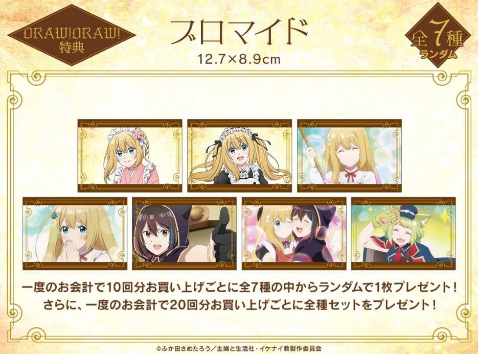 一度のお会計で10回分ご購入ごとに特典ブロマイド(全7種)をランダムで1枚、20回分ご購入で7枚全種プレゼント!
