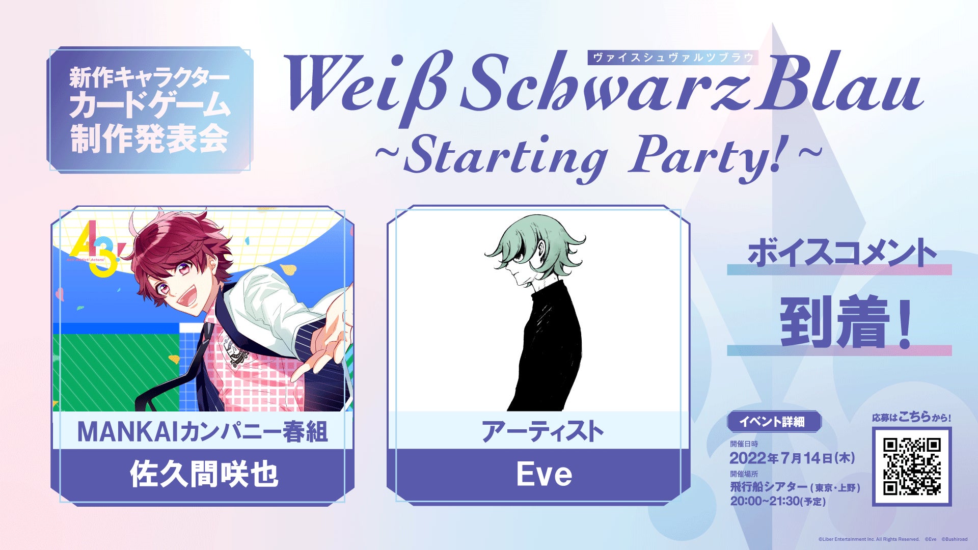 新作キャラクターカードゲーム制作発表会「ヴァイスシュヴァルツブラウ ~Starting Party!~」出演ゲスト決定!