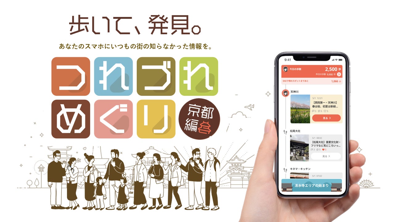 日常の“歩く”という行動で歩数に応じて地元を仮想的に散歩する機能を体験でき、それをきっかけに外出や他の住民との緩やかなつながりを持つなど、様々な地域接点の機会を提供するサービスです。