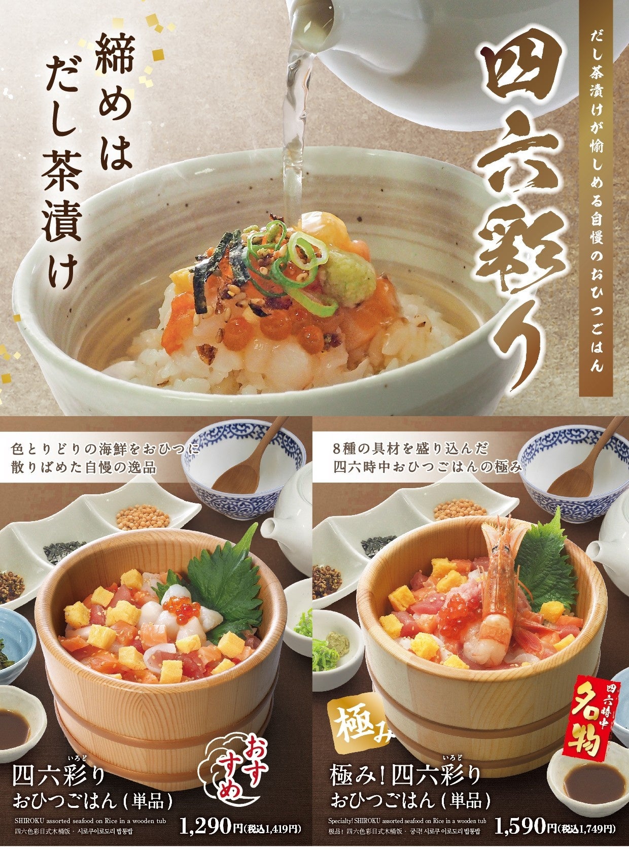 当社は、日本最大のだし茶漬け専門チェーン『おひつごはん四六時中』のブランド価値向上および事業拡大を目的に、立地特性に応じた店舗モデルの開発と、既存店のリニューアルならびに新規出店を積極的に推進しております。このたび、その一環として、イオンモール京都五条の『おひつごはん四六時中』をリニューアルし、若年層からファミリー層、シニア層まで幅広いお客さまに“だし茶漬け”の魅力をさまざまな利用シーンで感じていただける店舗へと刷新いたします。