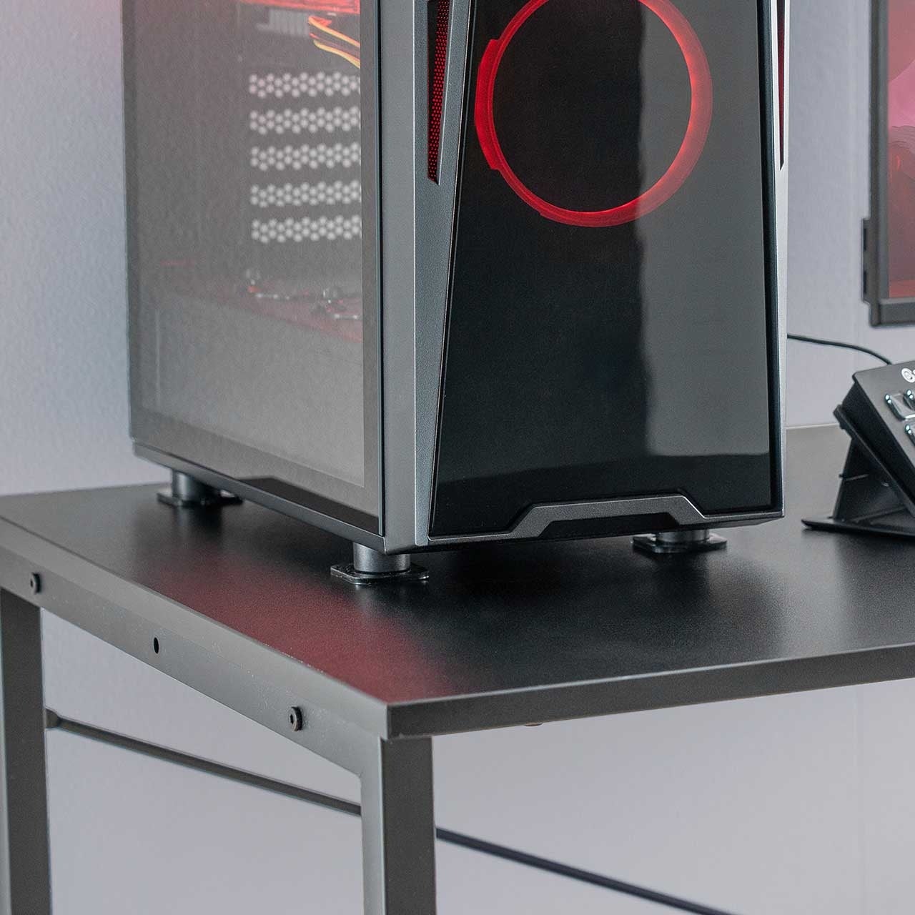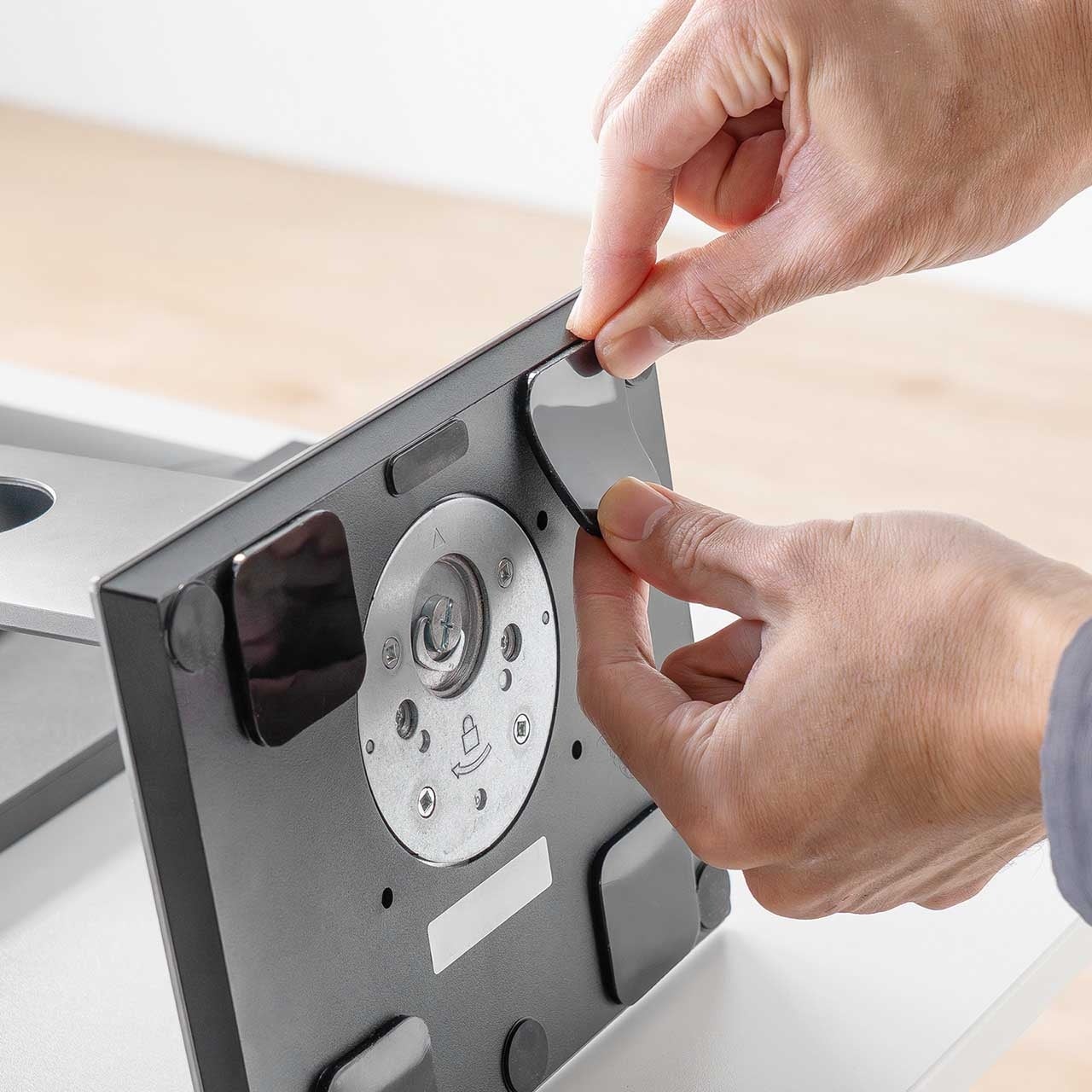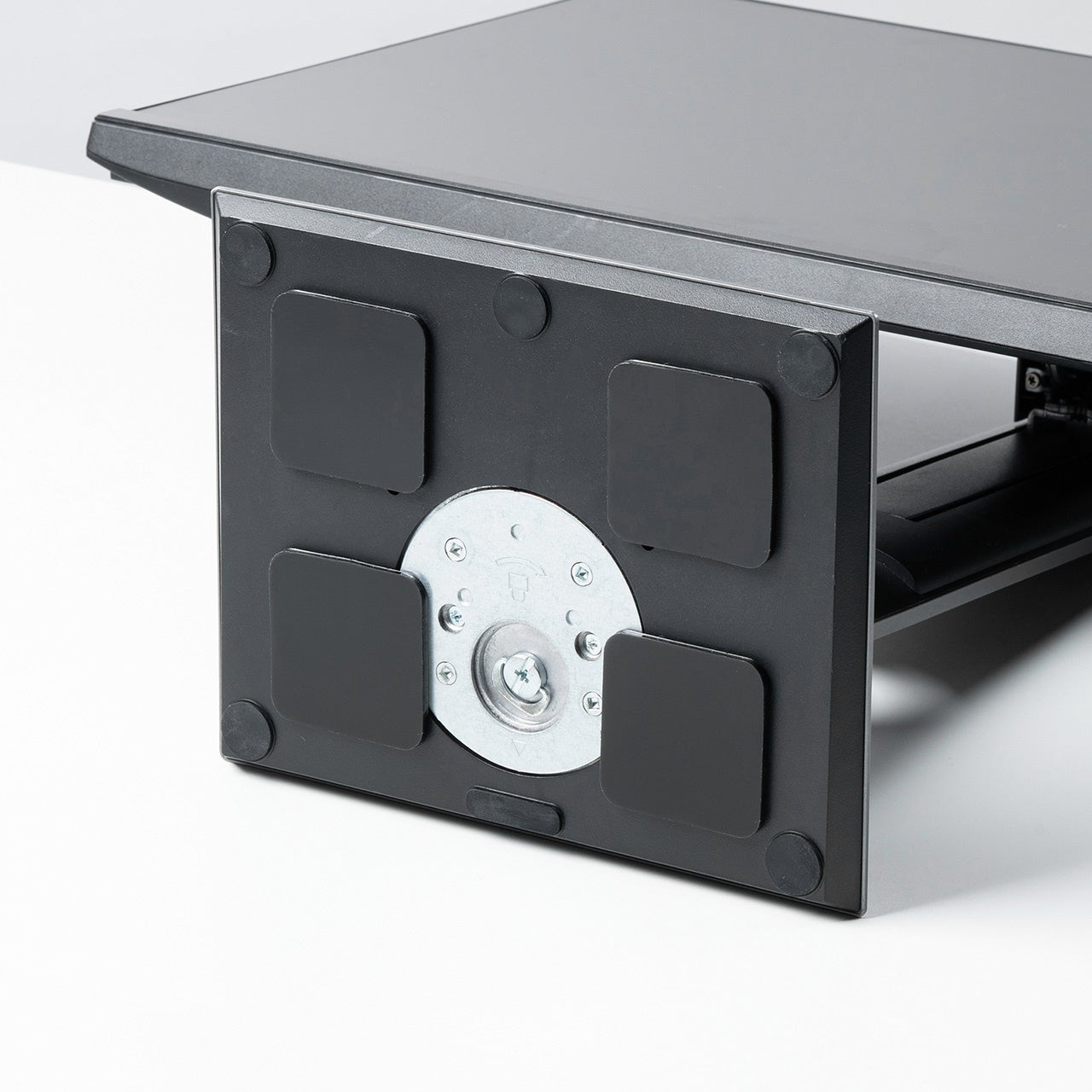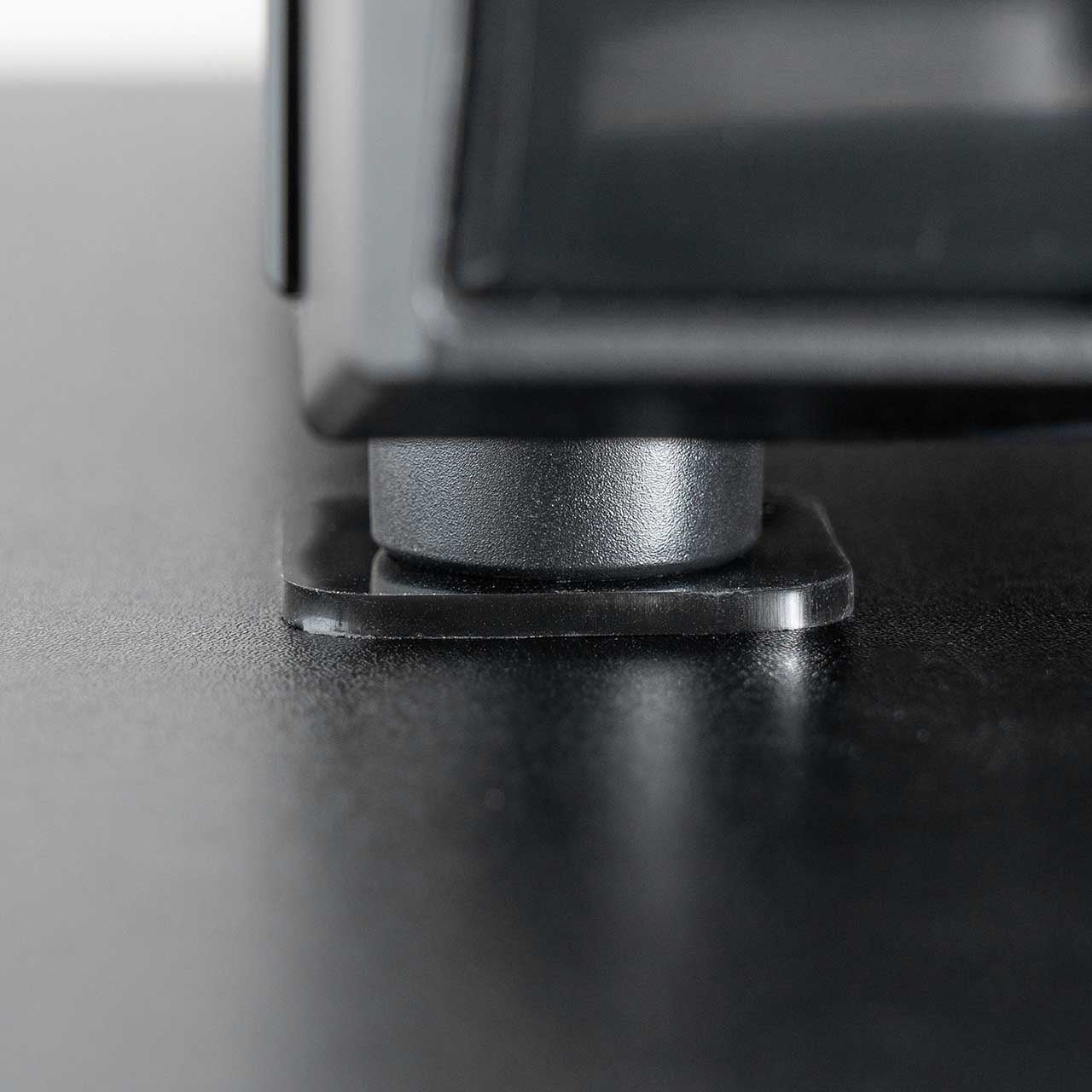 厚さわずか3mmの薄型設計で、機器の印象を損ないにくいのが特長です。ブラックカラーなので脚部や底面になじみやすく、設置後も目立ちにくい仕上がりに。リビングやデスク周りでも景観を崩さず使えます。