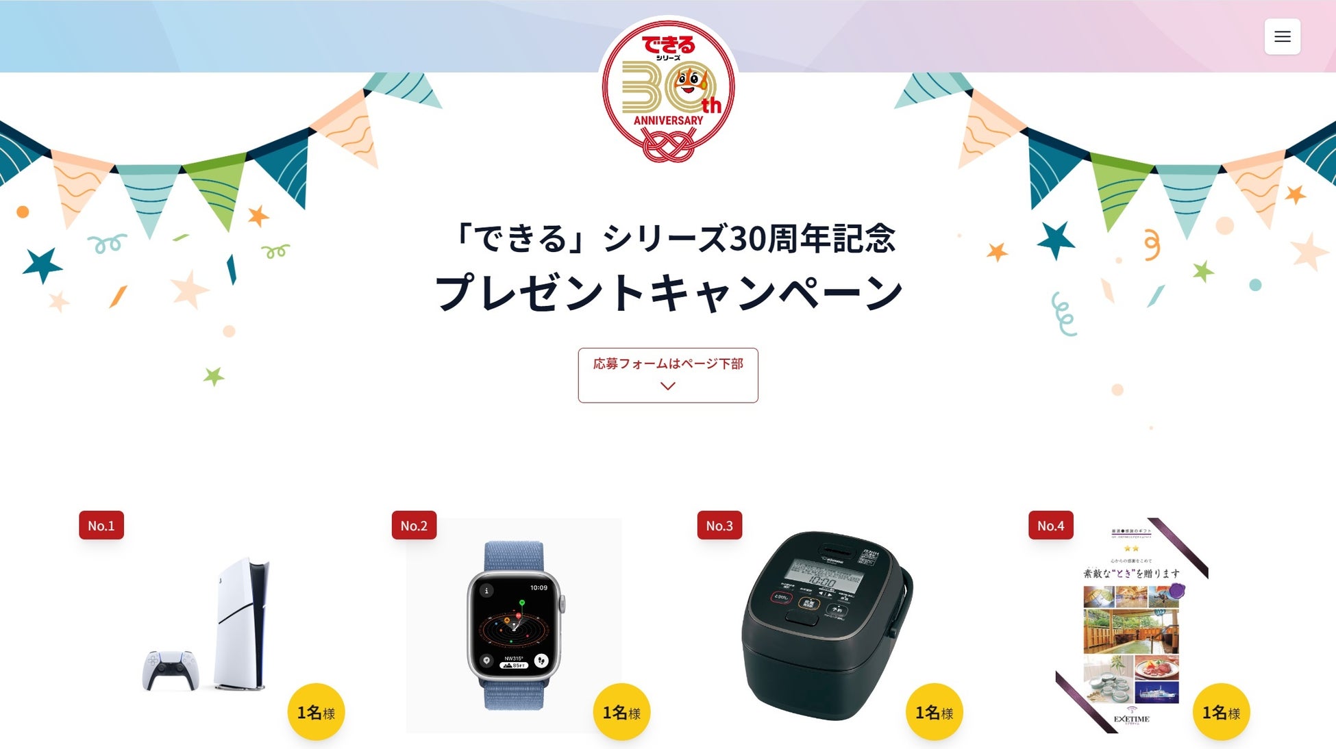 豪華賞品が当たる!『「できるシリーズ」30周年記念プレゼントキャンペーン』ページ
