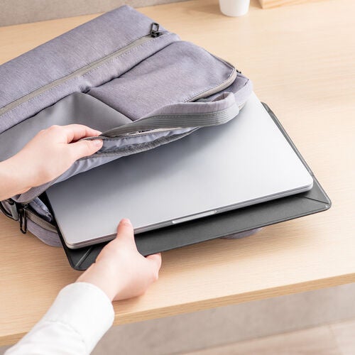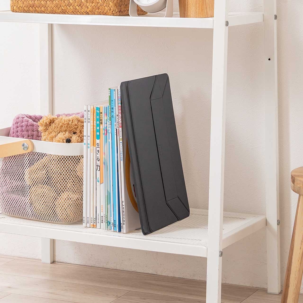 折りたたみ時の厚みはわずか5mm、重量も約409gと非常にスリムで軽量です。使い終わったらサッと畳んで本棚やデスクの隙間に収納できるため、場所を取りません。ノートと一緒にバッグに入れて持ち運ぶことも容易で、リビング学習から図書館、カフェ、塾など、場所を選ばずどこでも快適な学習スペースを作れます。