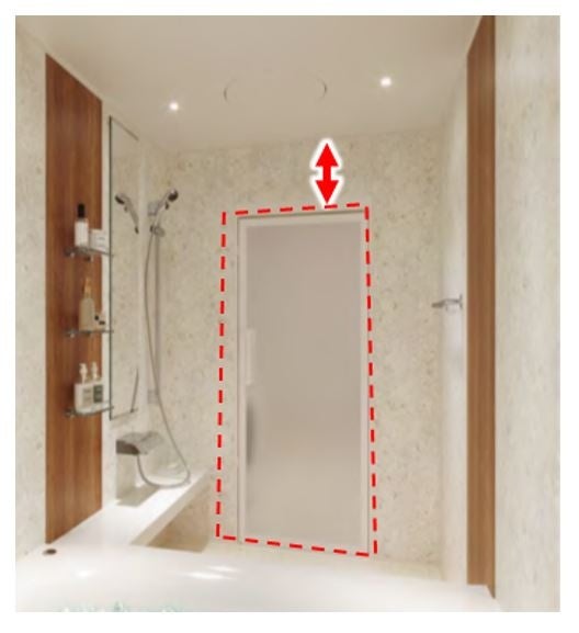 マンションでよくある浴室内の梁に合わせた加工や、梁をよけてドアの高さや幅の変更可能。パナソニック ハウジングソリューションズ独自のフラットラインLED照明もぴったり納めることができます。