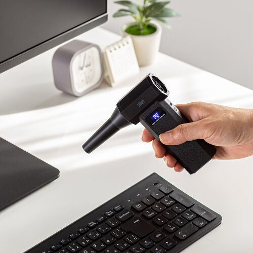 片手に収まるコンパクトなサイズ感ながら、最大風速約31m/sという強力な噴射力を備えている。キーボードの隙間に入り込んだ細かなホコリや、PC内部の精密なパーツに付着したゴミも、ピンポイントで力強く吹き飛ばす。缶タイプと異なり、最後まで風力が衰えず安定した清掃作業が行えるのが特徴だ。