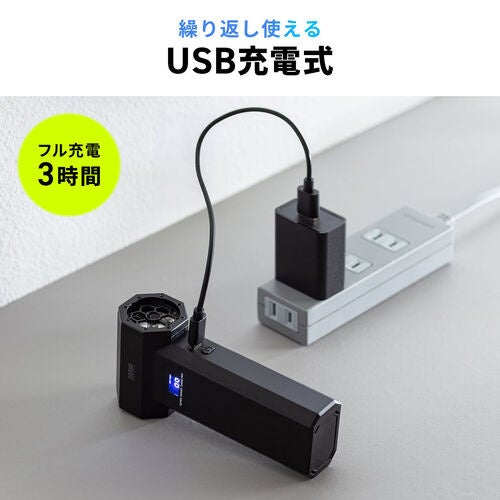 繰り返し使えるリチウムイオン電池を採用しており、面倒なガス缶の買い替えや廃棄は一切不要である。汎用性の高いUSB Type-Cポートを搭載し、PCやモバイルバッテリーから手軽に充電が可能。1回のフル充電で最大約60分(風量1の場合)の連続使用ができ、ゴミを出さないエコな清掃スタイルを低コストで実現する。