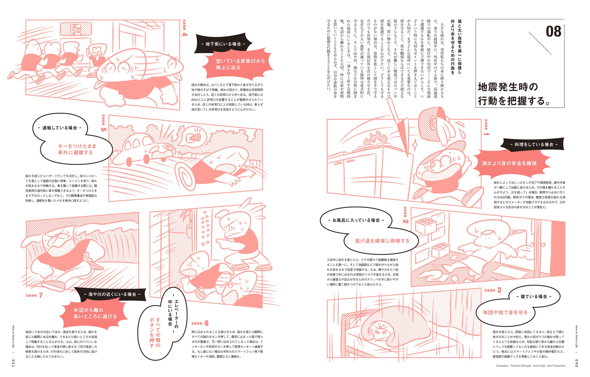 「FRaU SDGs MOOK 防災 まいにちの、防災手帖。」は、いま日本を取り巻く災害の危機に対して、ひとりでも多くの人がその身を守れることを願い、関東大震災から100年にあたる2023年9月1日の前日に発行いたしました。災害に備え事前に準備すべきもの、有事の際に取るべき行動や情報収集の仕方などを各テーマごとにティップス形式でわかりやすくまとめた、丸ごと一冊防災対策号となっています。