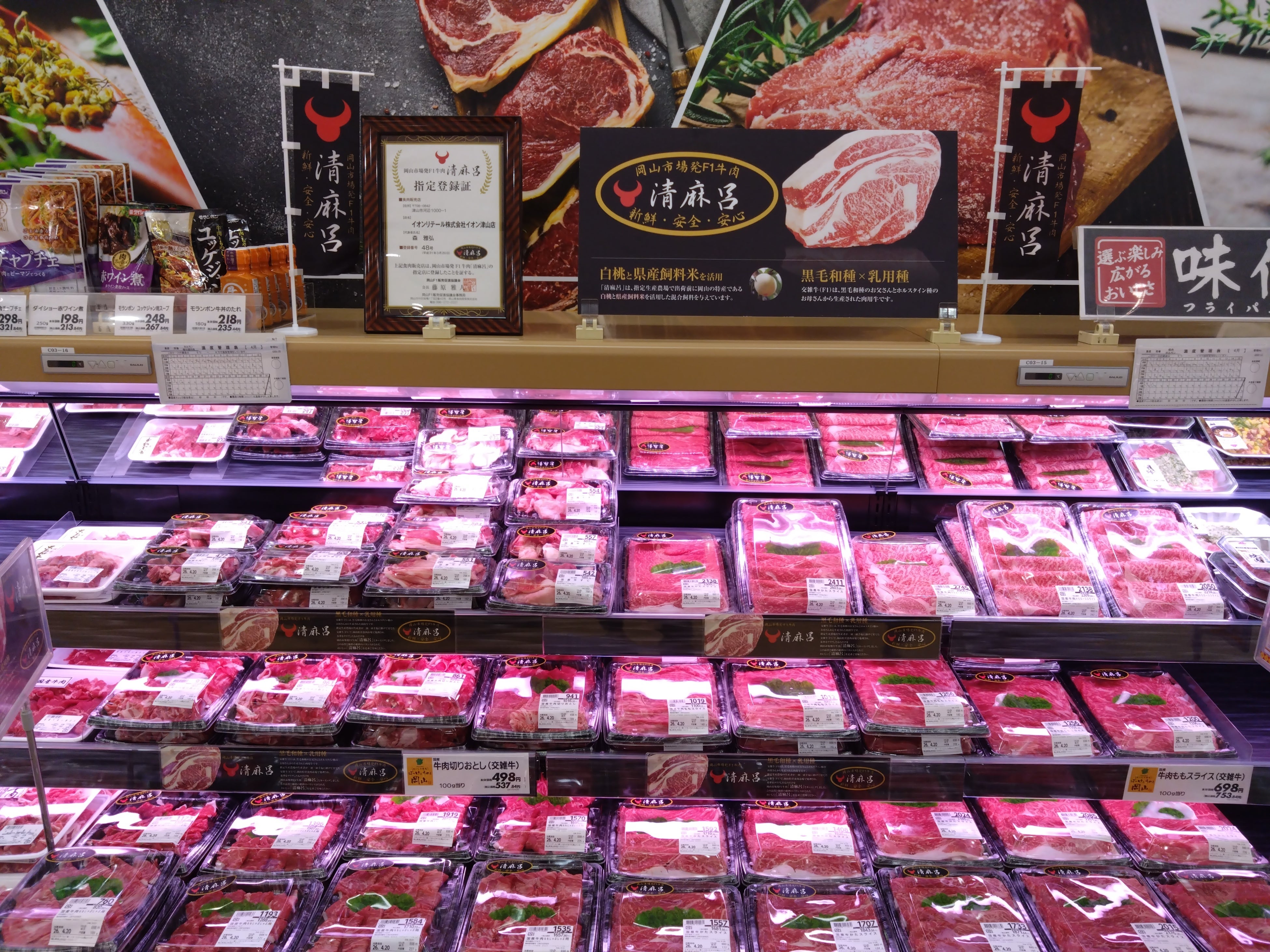 畜産売場では、岡山特産の白桃や県産飼料米を活用した飼料で育てられた地元銘柄牛「清麻呂」を新たに品揃えします。また、津山地域の郷土料理“ホルモンうどん”にも最適な国産牛のショウチョウを新規導入するなど、地域需要の高いホルモンの品揃えを強化し、食文化に寄り添った売場づくりに取り組みます。