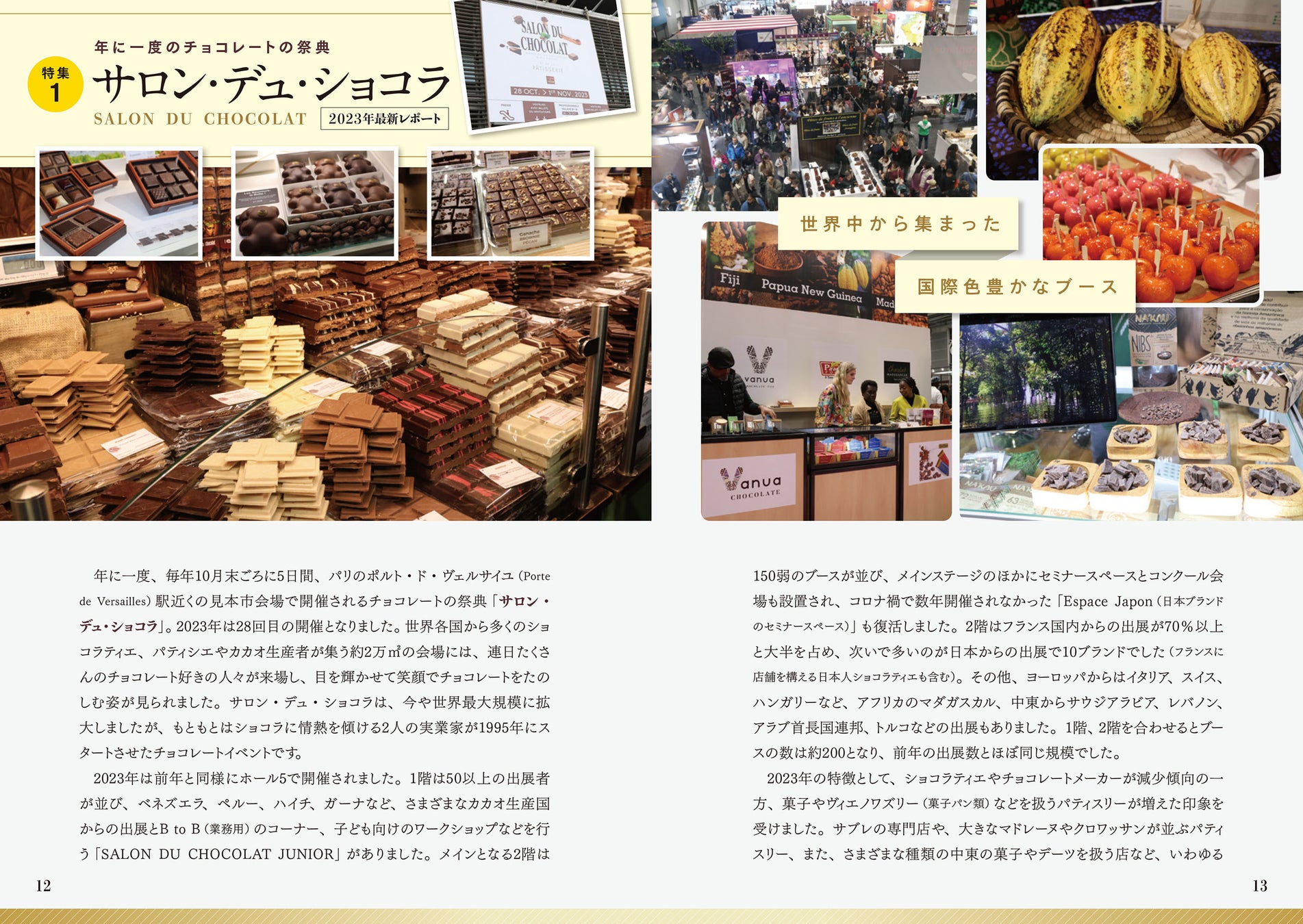 パリで開催されたチョコレートの祭典「サロン・デュ・ショコラ2023」のレポートをはじめ、国内外61のショコラティエ情報、日本国内でたのしめる23のBean to Bar専門店の紹介など、チョコレート好きなら見逃せない最新トピックを満載した一冊です。