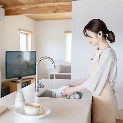 ペアリング不要でテレビの音を低遅延・クリアに楽しめるオープンイヤー型ワイヤレスイヤホン