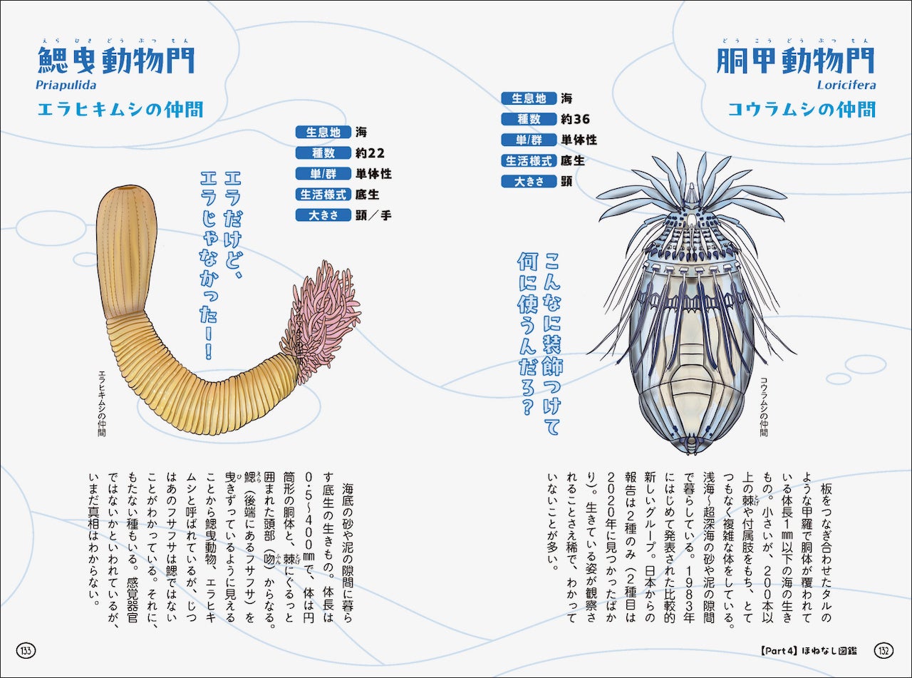 ユニークな形態や仰天するような生態をもつ海のほねなしの魅力を、親しみやすいイラストをまじえてたっぷりとご紹介します。