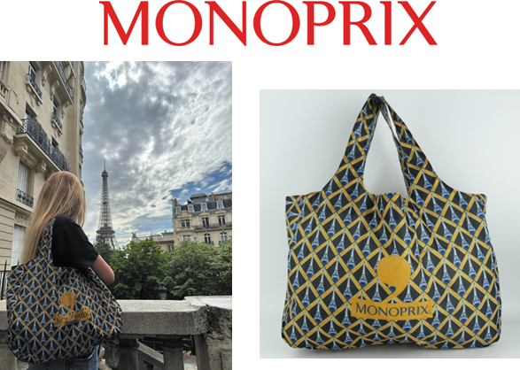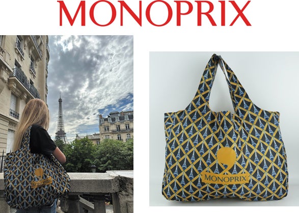 食品から生活雑貨まで幅広く扱うフランス発の人気総合スーパーモノプリのエコバッグです。(食品売場で販売。店舗により取り扱いデザインが異なり、色・柄が変更となる場合や、取り扱いのない店舗があります。)