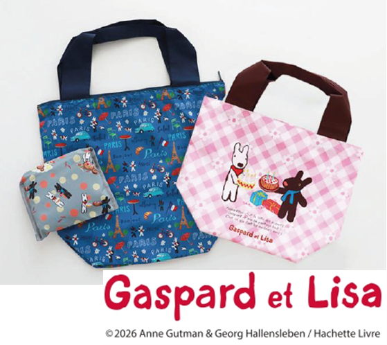 フランスの絵本作品「リサとガスパール」のとびきりキュートなキャラクターを描いたエコバッグです。イオン限定カラーも登場します。用途で選べるS・Mサイズの展開、折り畳み収納ポケット付きで使いやすさも魅力です。(イオンリテールで取り扱い)
