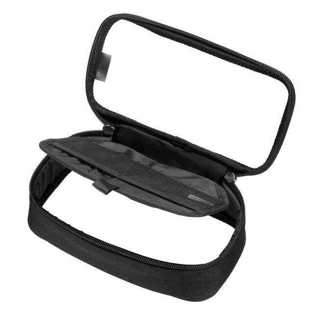 内部にはゴムバンドとメッシュポケットを搭載。ケーブル・充電器・USBメモリなど小物類を固定しながら整理でき、ポーチ内のごちゃつきを抑えます。収納の「見やすさ」と「取り出しやすさ」を両立しました。