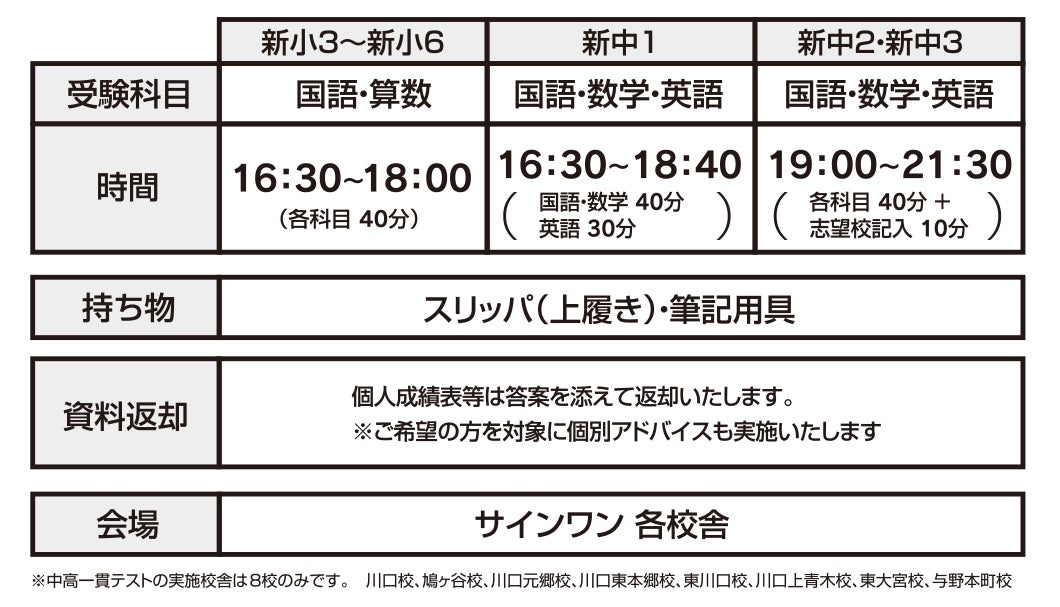 【埼玉県の進学塾サインワン】2月10日(土)・3月9日(土)に新小3生~新中3生対象の『春期オープンテスト』開催!