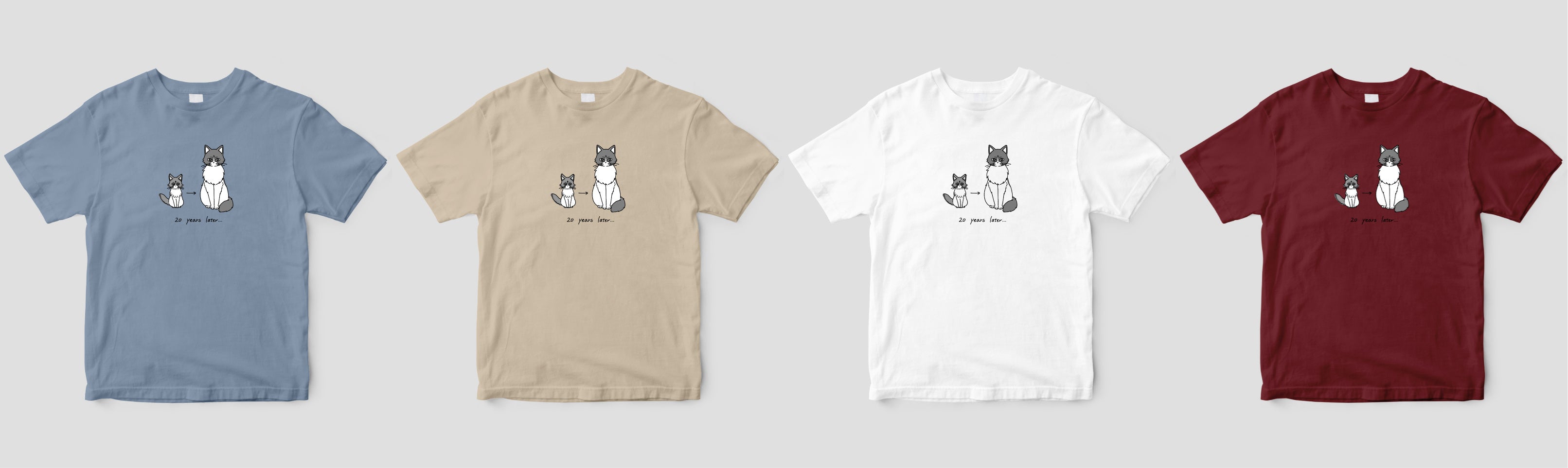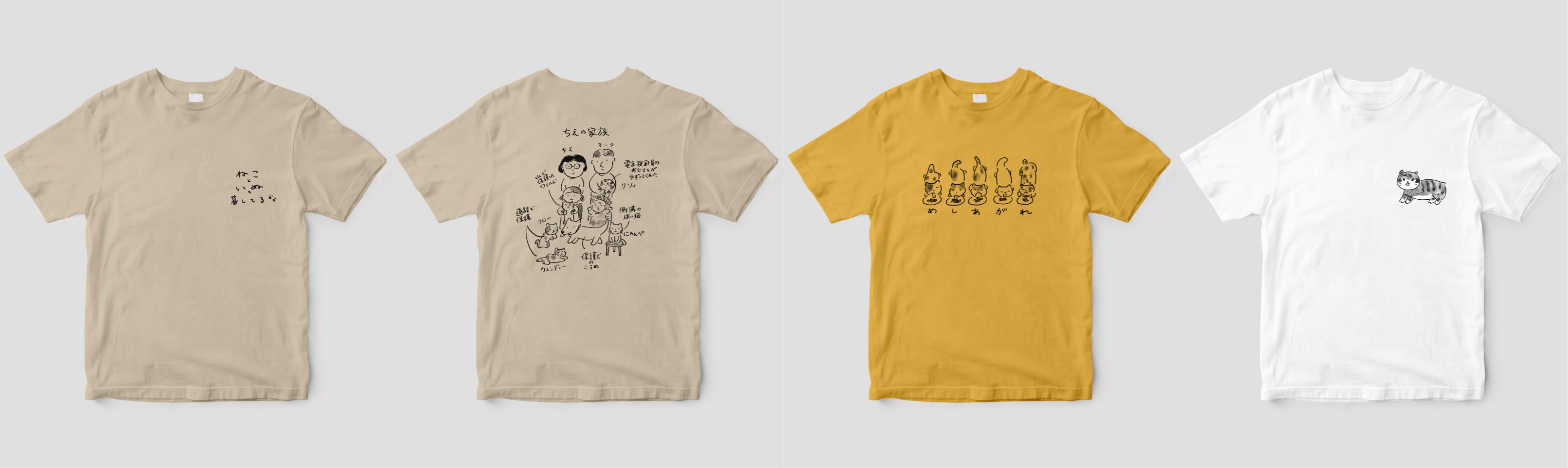 別冊天然生活『マンガ 天然ねこ生活VOL.2』の発売を記念して、マンガ家の今日マチ子さん、午後さん、ちえちひろさん。谷口菜津子さん、花原史樹さん、オキエイコさん6名のオリジナルTシャツをつくりました。