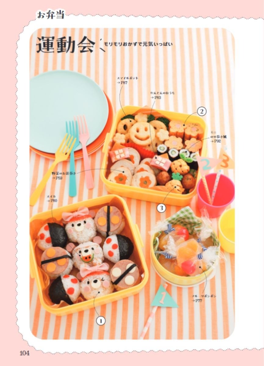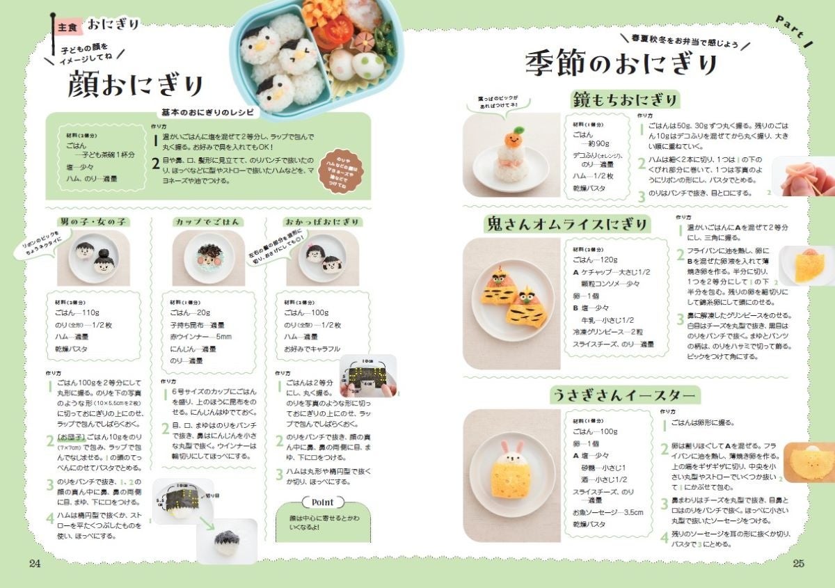 ほかにも、運動会や桃の節句・端午の節句、クリスマスやお正月など、たくさんの人が集まるイベントや幼稚園・保育園、学校の行事等で使える、お子さまが大喜びするかわいいテクニックとレシピが盛りだくさんです!