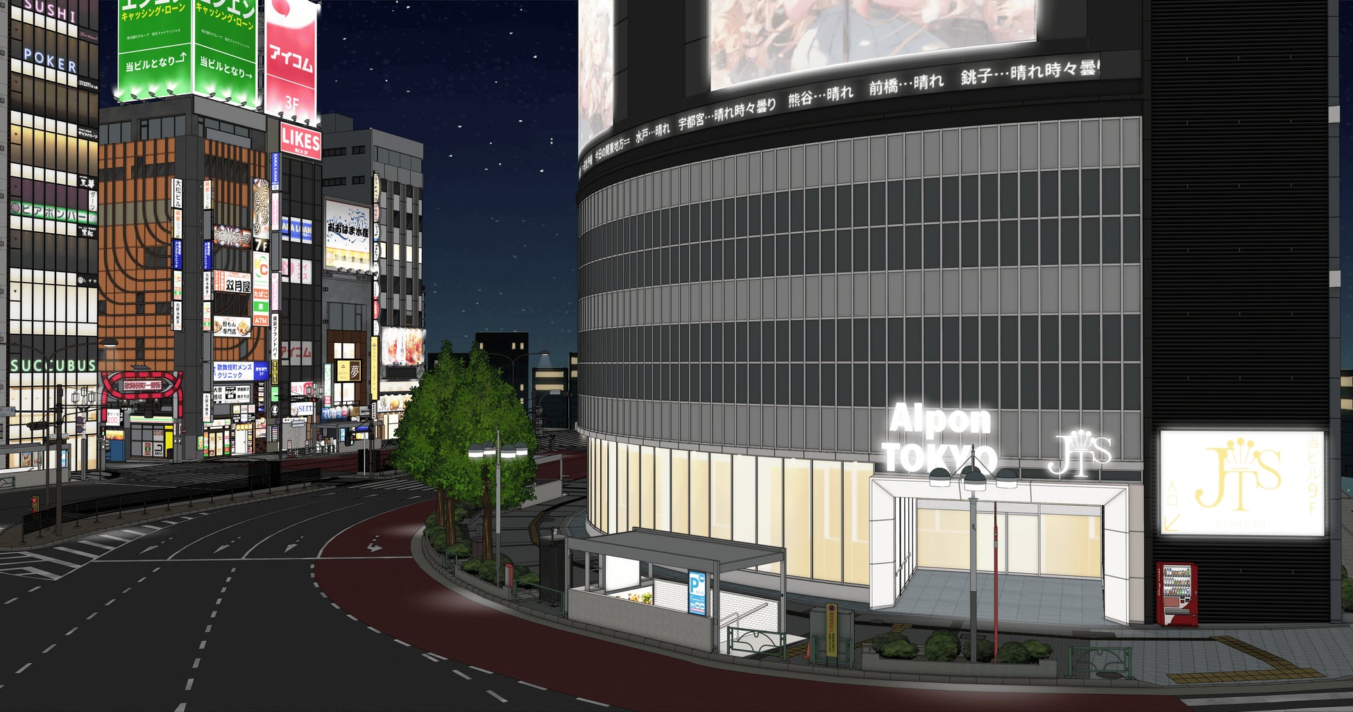 アニメイトグループのロケットスタッフ株式会社(本社:東京都豊島区、代表取締役:高榮郁)が運営する、『PLAYTOONS https://playtoons.jp/store 』にて本日より当社オリジナル3D背景「歌舞伎町」がリニューアル!新たに追加された『Alpon Tokyoエリア』や最新の看板、交通施設、マンホールなど、街のリアリティを高める数々の修正を行いました。歌舞伎町のシーン演出がさらに魅力的に実現可能です。