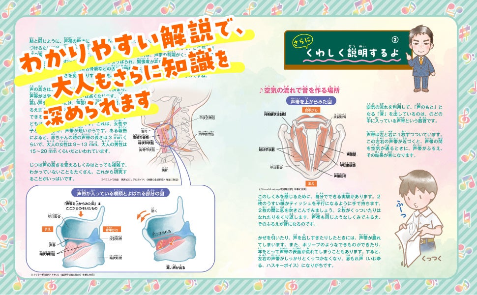 1月24日に株式会社講談社が発売する『絵本 うたうからだのふしぎ』は、気鋭の言語学・音声学者である川原繁人氏とゴスペラーズの北山陽一氏の共著で、からだの中から声や歌が生まれる奇跡を描いた作品です。