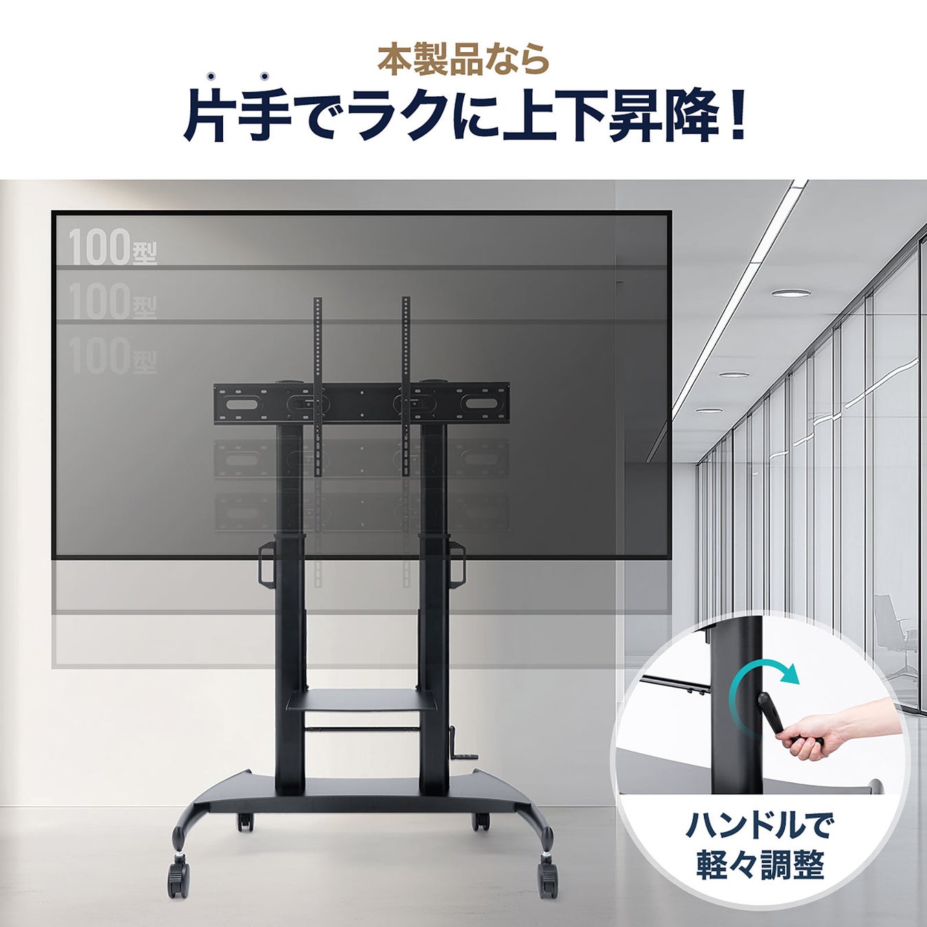 テレビスタンド 100型 100インチ対応 上下昇降 手動 ディスプレイスタンド キャスター付 ハイタイプ